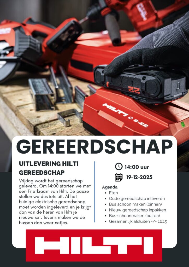 - 19 december – Uitlevering HILTI gereedschap