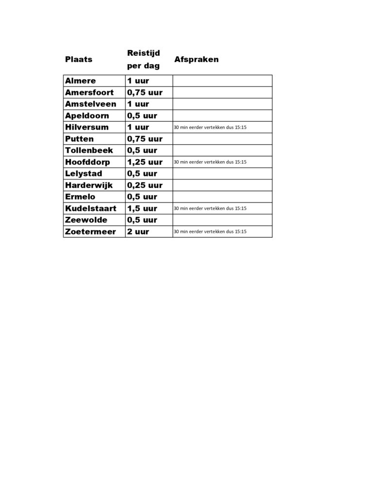 Afspraak reistijden 2025